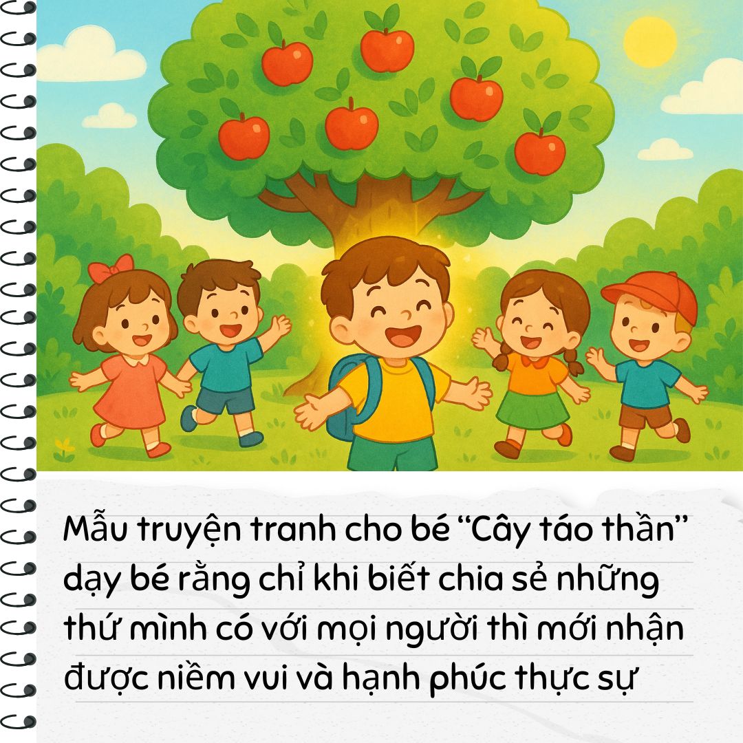 Thế là tất cả cùng nhau chạy ra vườn. Cậu bé tự mình trèo lên bứt những quả chín ném xuống cho các bạn. Các bạn lại cười đùa, vui vẻ. Cậu bé chợt hiểu rằng điều hạnh phúc nhất trên trái đất này là cùng chia sẻ niềm vui với mọi người.