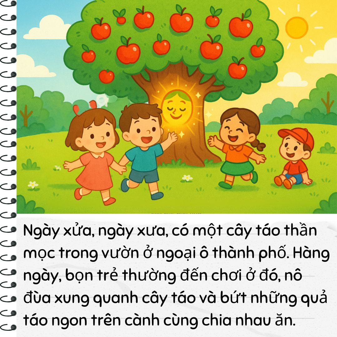 Ngày xửa, ngày xưa đã lâu lắm rồi, có một cây táo thần mọc trong vườn ở ngoại ô thành phố. Hàng ngày, bọn trẻ thường đến chơi ở đó, nô đùa xung quanh cây táo và bứt những quả táo ngon trên cành cùng chia nhau ăn.