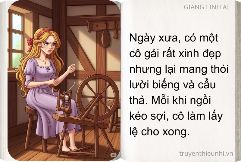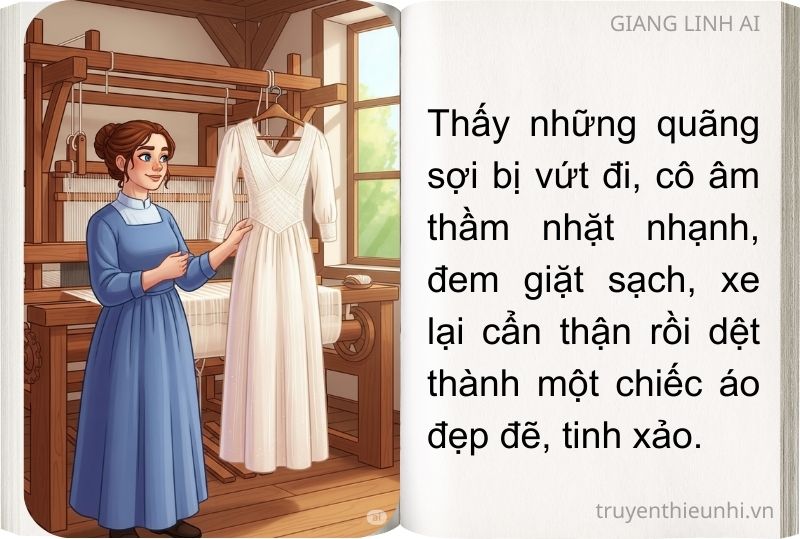 Ngày xưa có một cô gái xinh đẹp nhưng lười biếng và cẩu thả. Những sợi chỉ bị cô vứt đi tưởng như vô giá trị… lại trở thành một chiếc áo đẹp nhờ đôi tay cần mẫn của một cô gái khác. Và chính chiếc áo ấy đã làm thay đổi cả số phận hai con người.