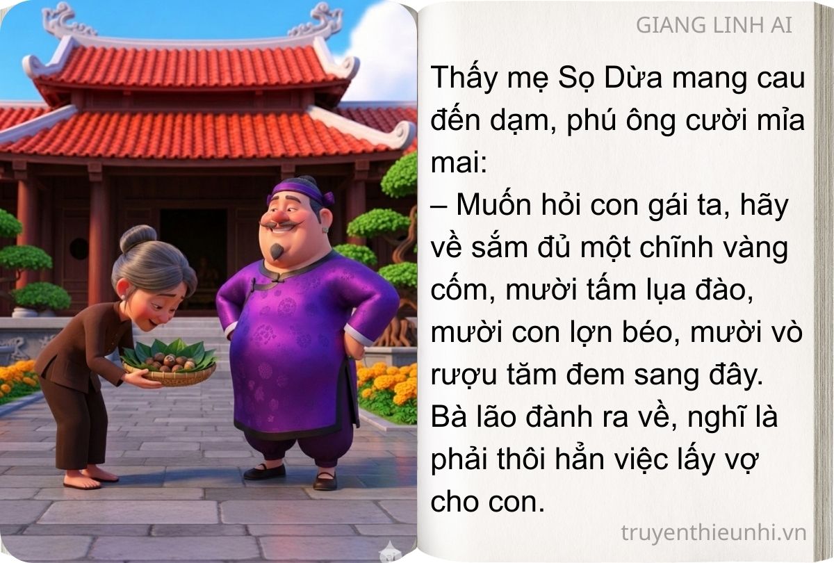 Thấy mẹ Sọ Dừa mang cau đến dạm, phú ông cười mỉa mai: