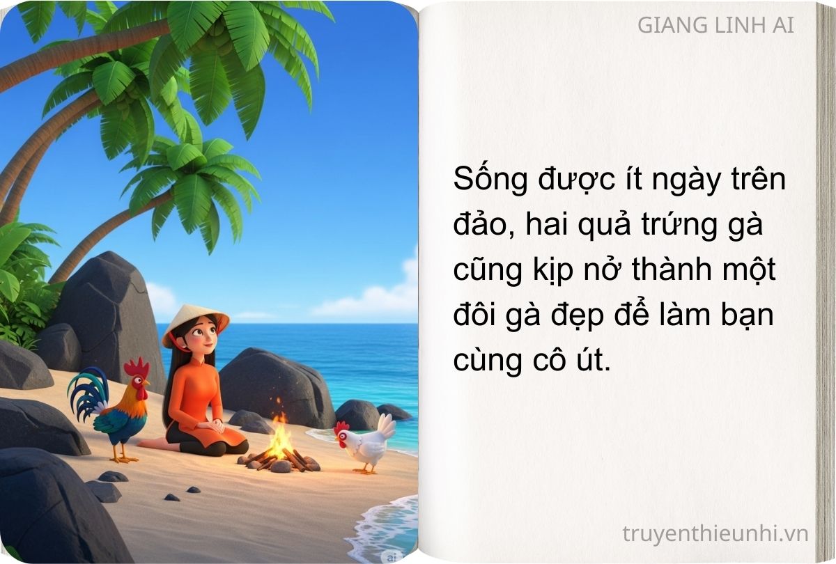 Một hôm có chiếc thuyền đi qua đảo, con gà trống nhìn thấy bèn gáy to: