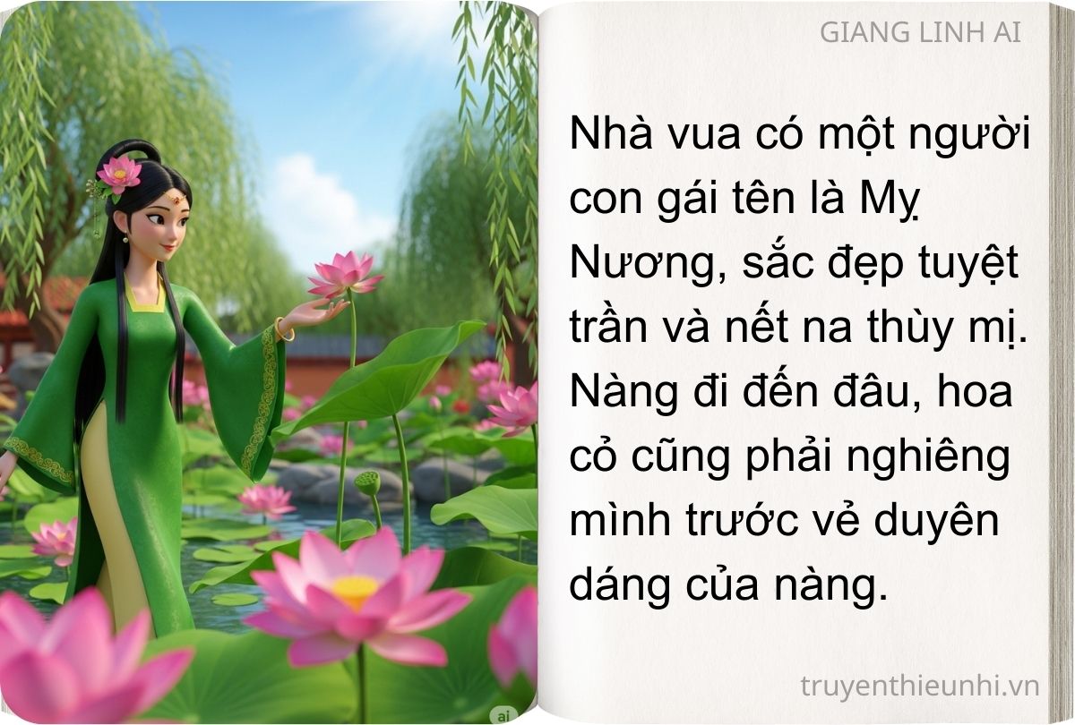 Hùng Vương thứ mười tám có một người con gái tên gọi là Mỵ Nương, sắc đẹp tuyệt trần. Mỵ Nương được vua cha yêu thương rất mực. Nhà vua muốn kén cho nàng một người chồng thật xứng đáng.