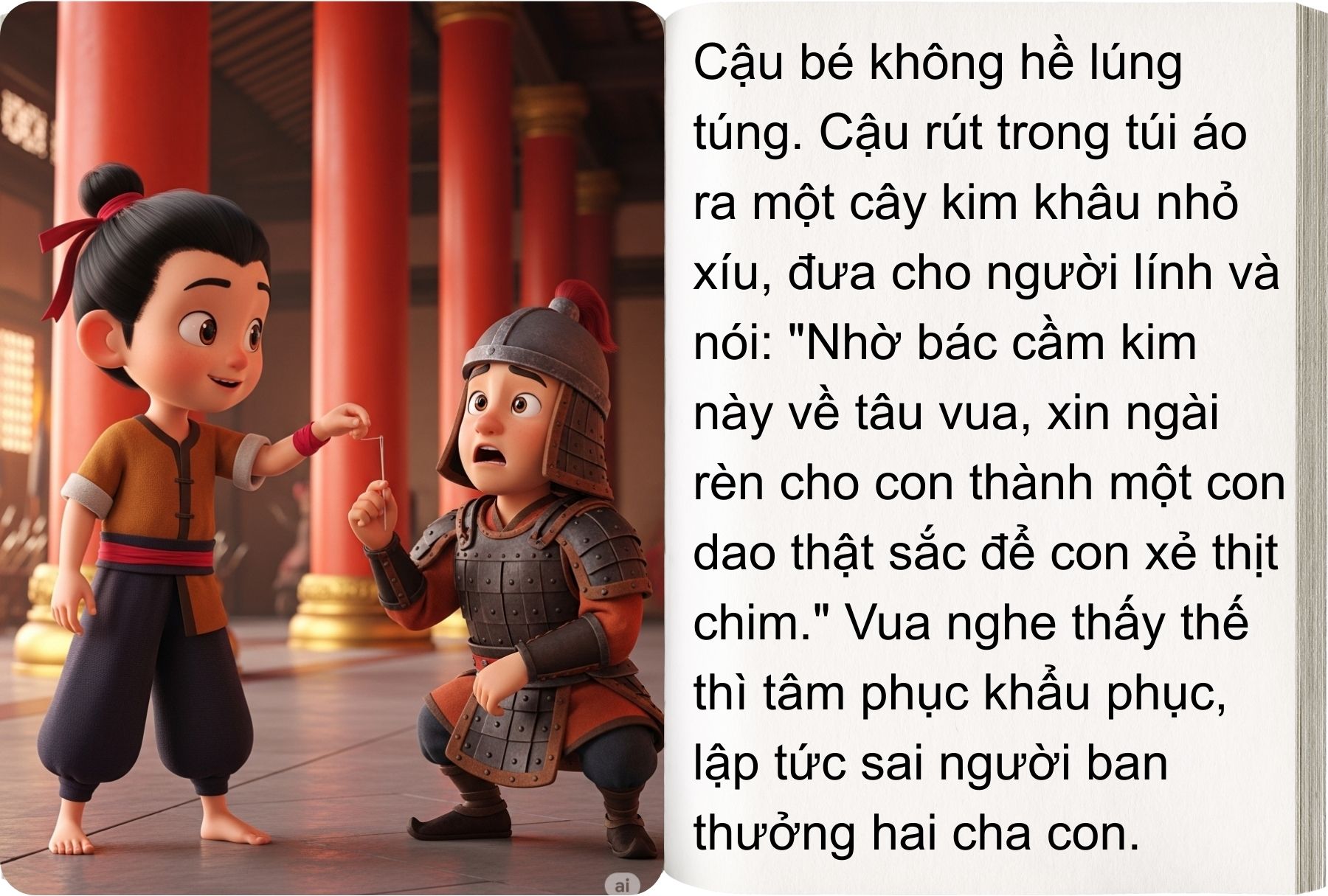 Vua nghe thấy thế thì tâm phục khẩu phục, lập tức sai người ban thưởng hai cha con.
