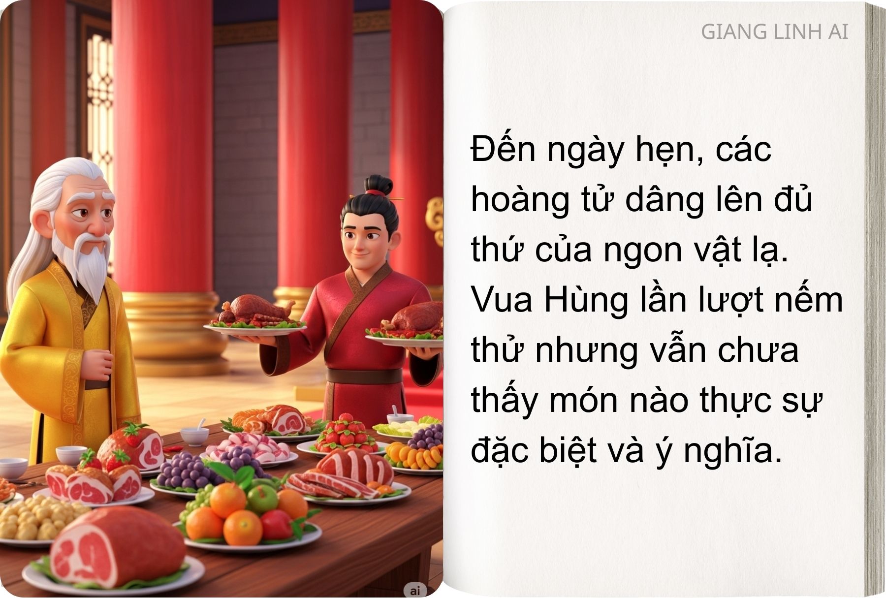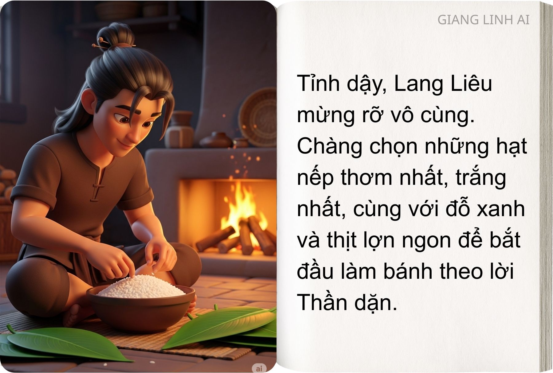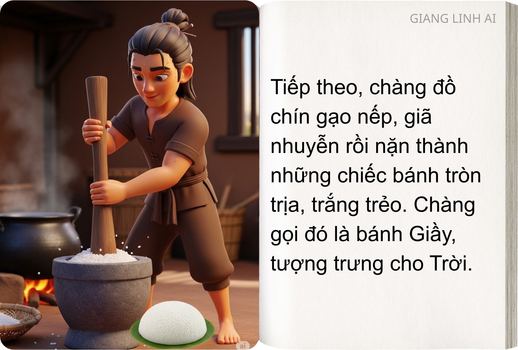 “Sự tích Bánh Chưng – Bánh Giầy” kể về chàng hoàng tử Lang Liêu nghèo khó, bằng tấm lòng chân thành đã sáng tạo nên hai loại bánh giản dị mà sâu sắc để dâng lên vua cha.