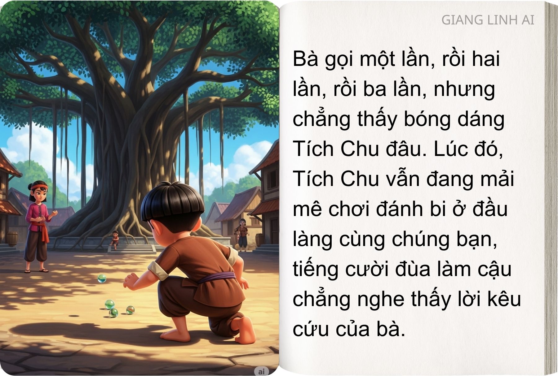– Bà ơi, bà đi đâu? Bà ở lại với cháu. Cháu sẽ mang nước cho bà. Bà ơi!