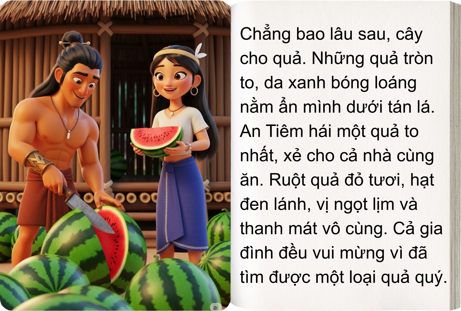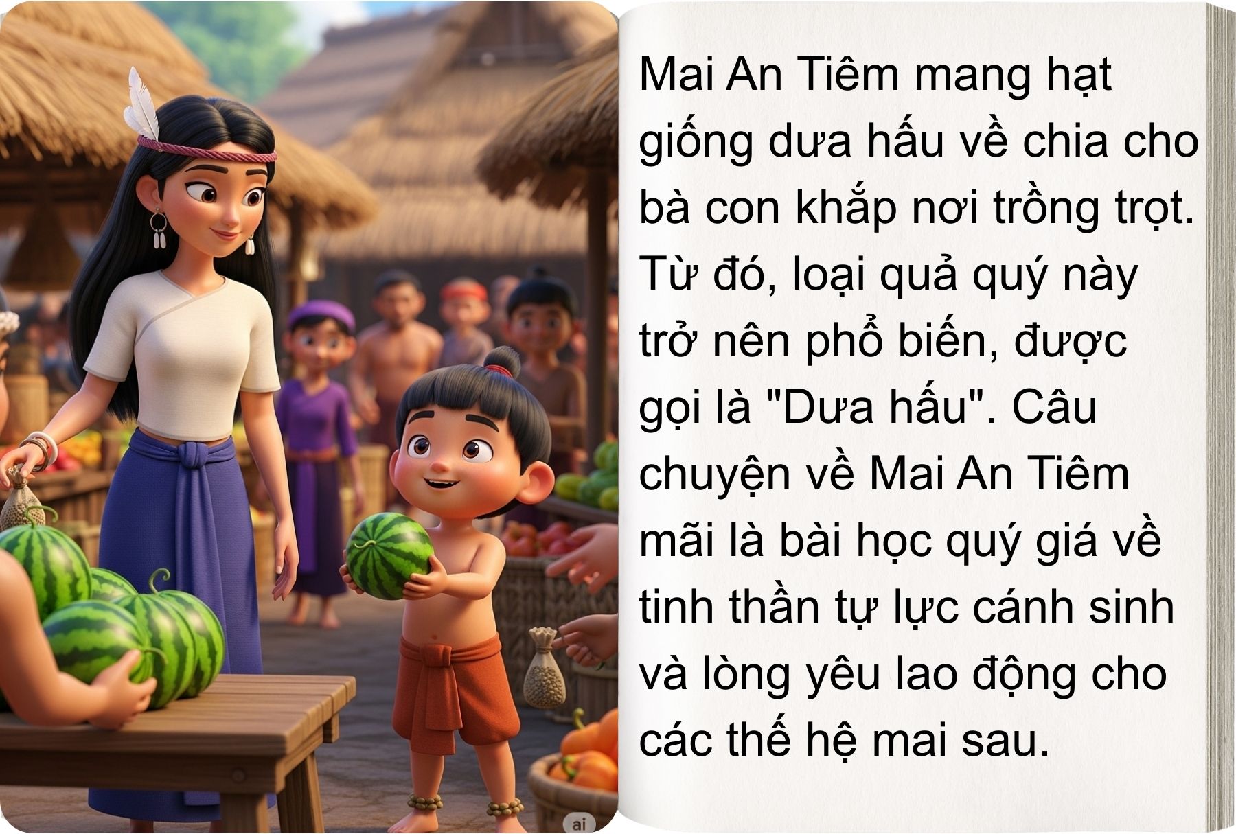 “Sự tích dưa hấu” không chỉ giải thích nguồn gốc của loại quả quen thuộc, mà còn gửi gắm bài học sâu sắc: